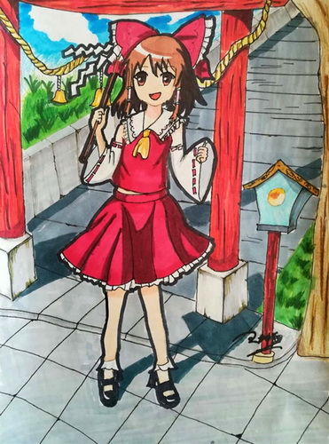《神社里的少女》