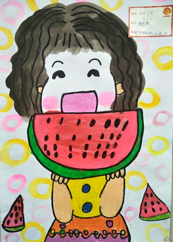 吃西瓜的小女孩