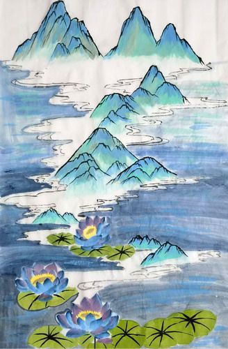 山泉映荷