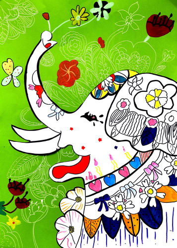 繁花簇拥的彩象