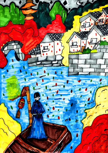 彩墨水乡.独舟意境