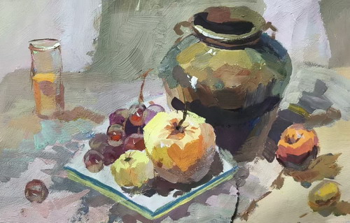 青瓷罐与果